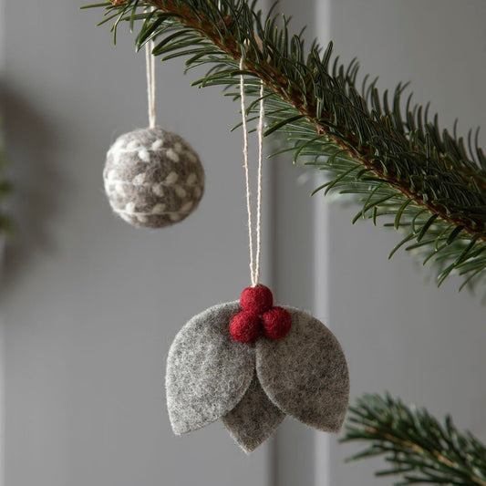 Gry & Sif Baumschmuck Filz Blätter mit Beeren - Anhänger