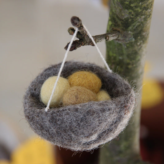 Gry & Sif Ostern Filz Nest Anhänger - gelb, rot