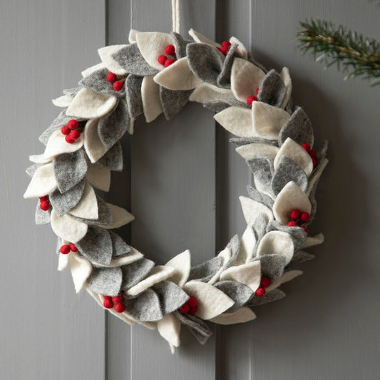 Filz ist ein besonders beliebtes Material in der skandinavischen Dekoration, und unsere Weihnachtskränze aus Filz bringen diese Gemütlichkeit direkt in Dein Heim. Die weiche, natürliche Struktur des Filzes gibt dem Kranz eine warme Ausstrahlung und passt perfekt zur winterlichen Stimmung. Unsere Filzkränze sind zudem nachhaltig und umweltfreundlich – ideal für alle, die auf natürliche und langlebige Materialien setzen. Perfekt für den Innen- und Außenbereich geeignet, sind diese Kränze pflegeleicht und langlebig.